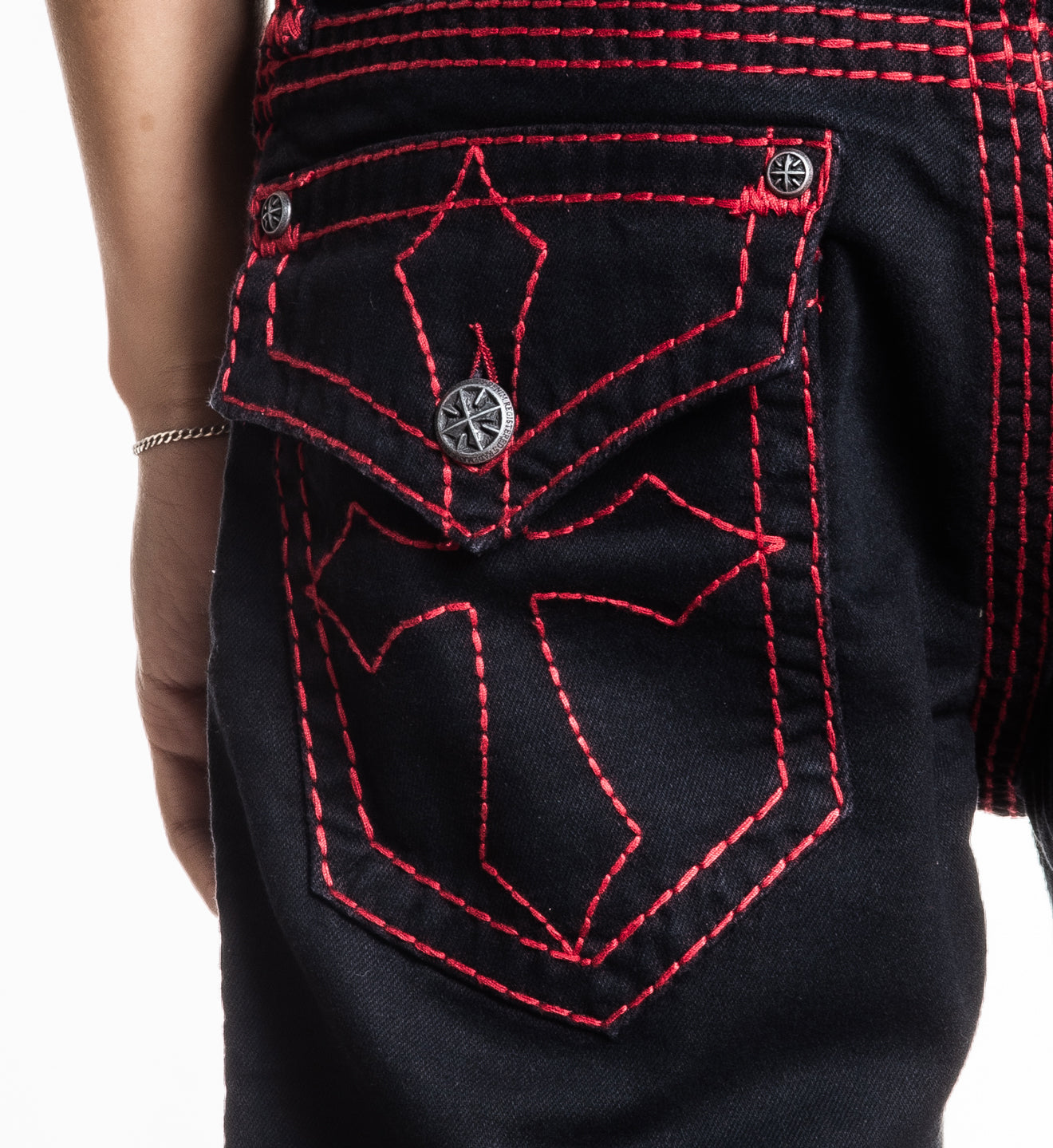 - Antique Silver Buttons on Back Pockets