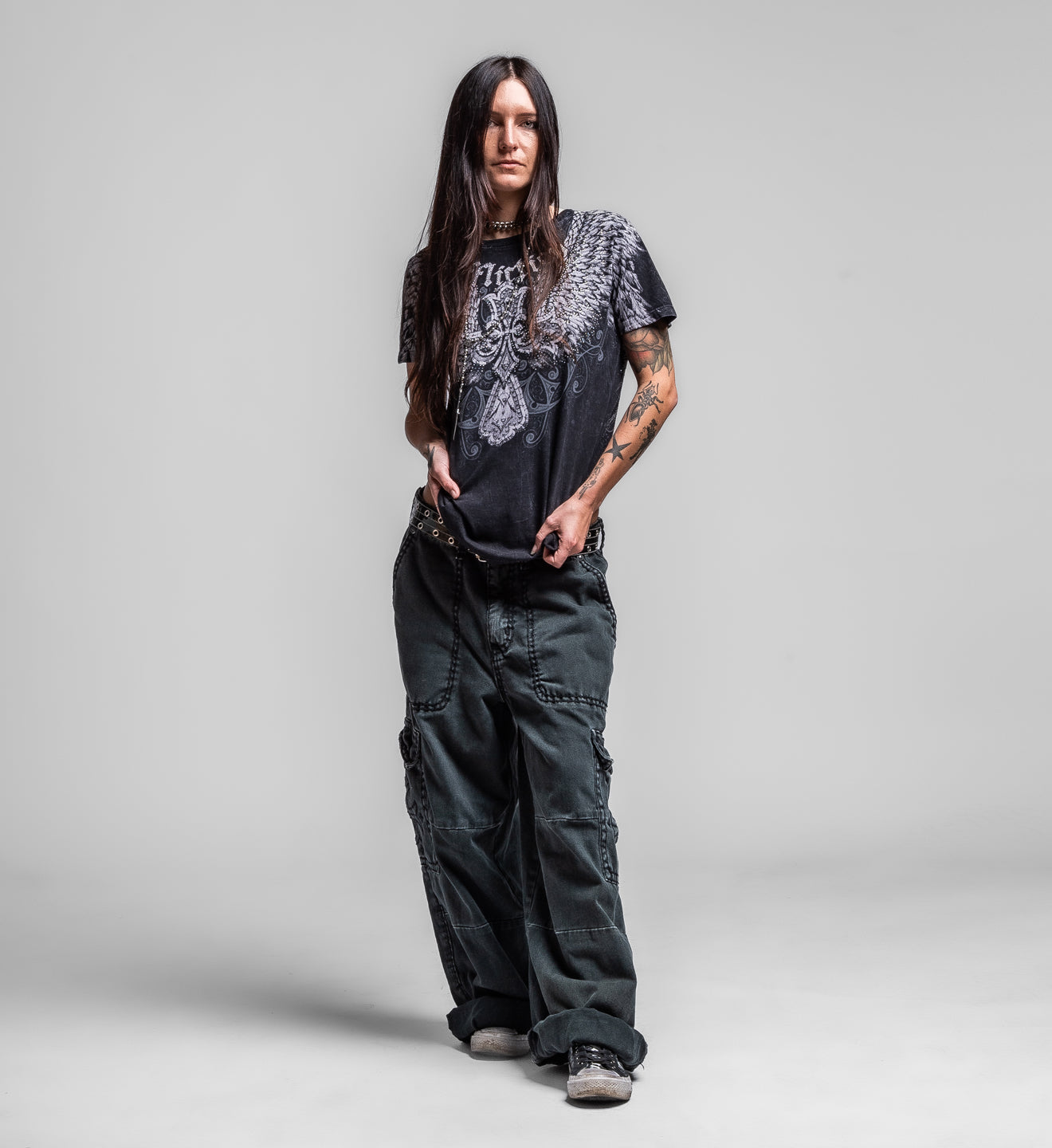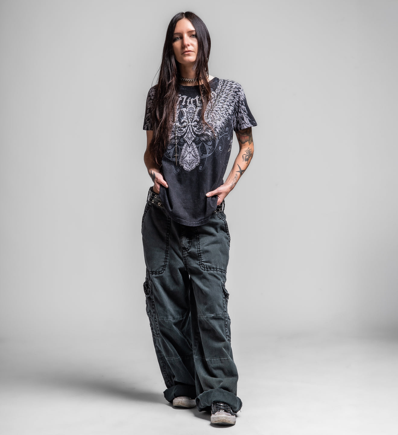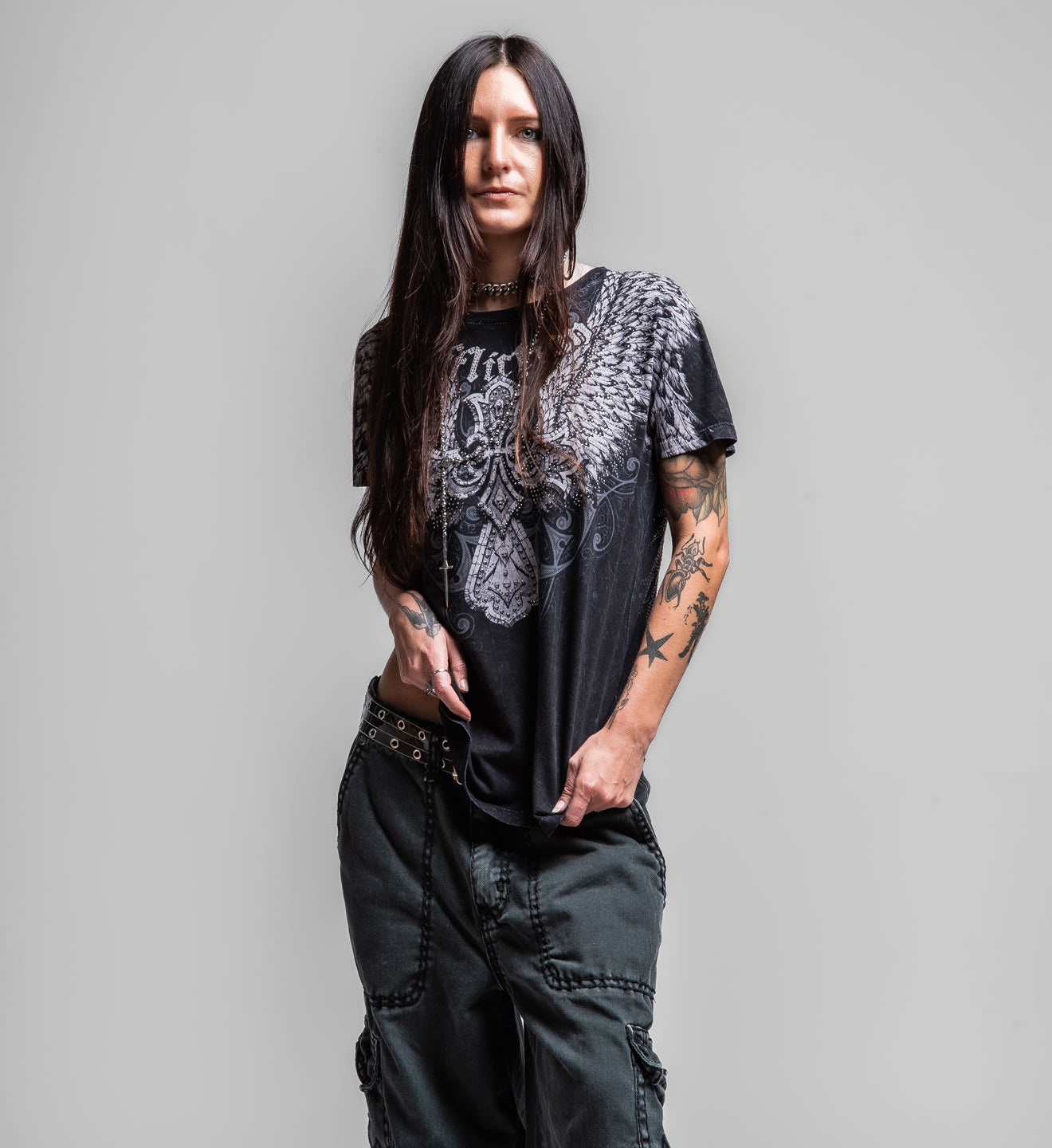 - Grey Rhinestones On Front + Back Art